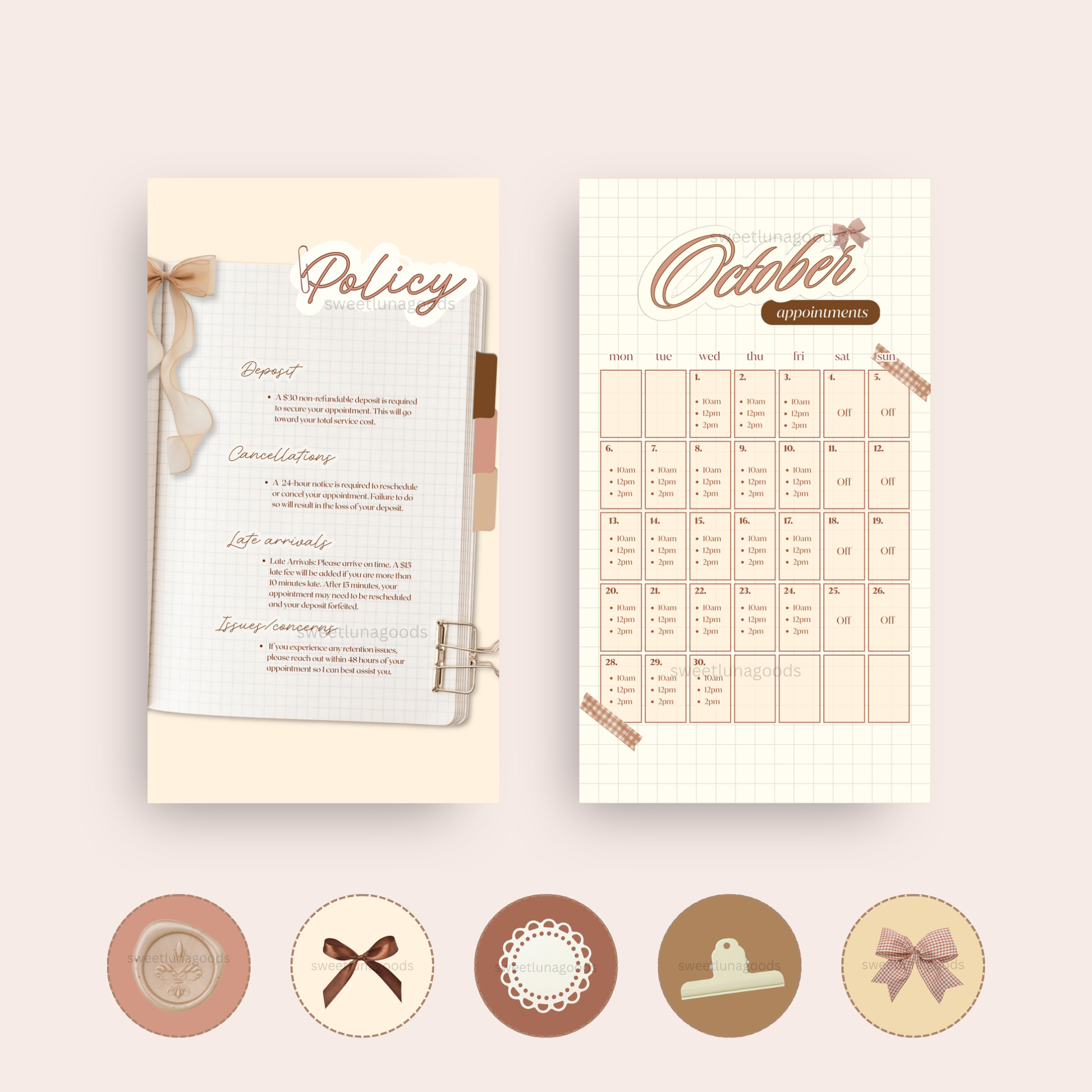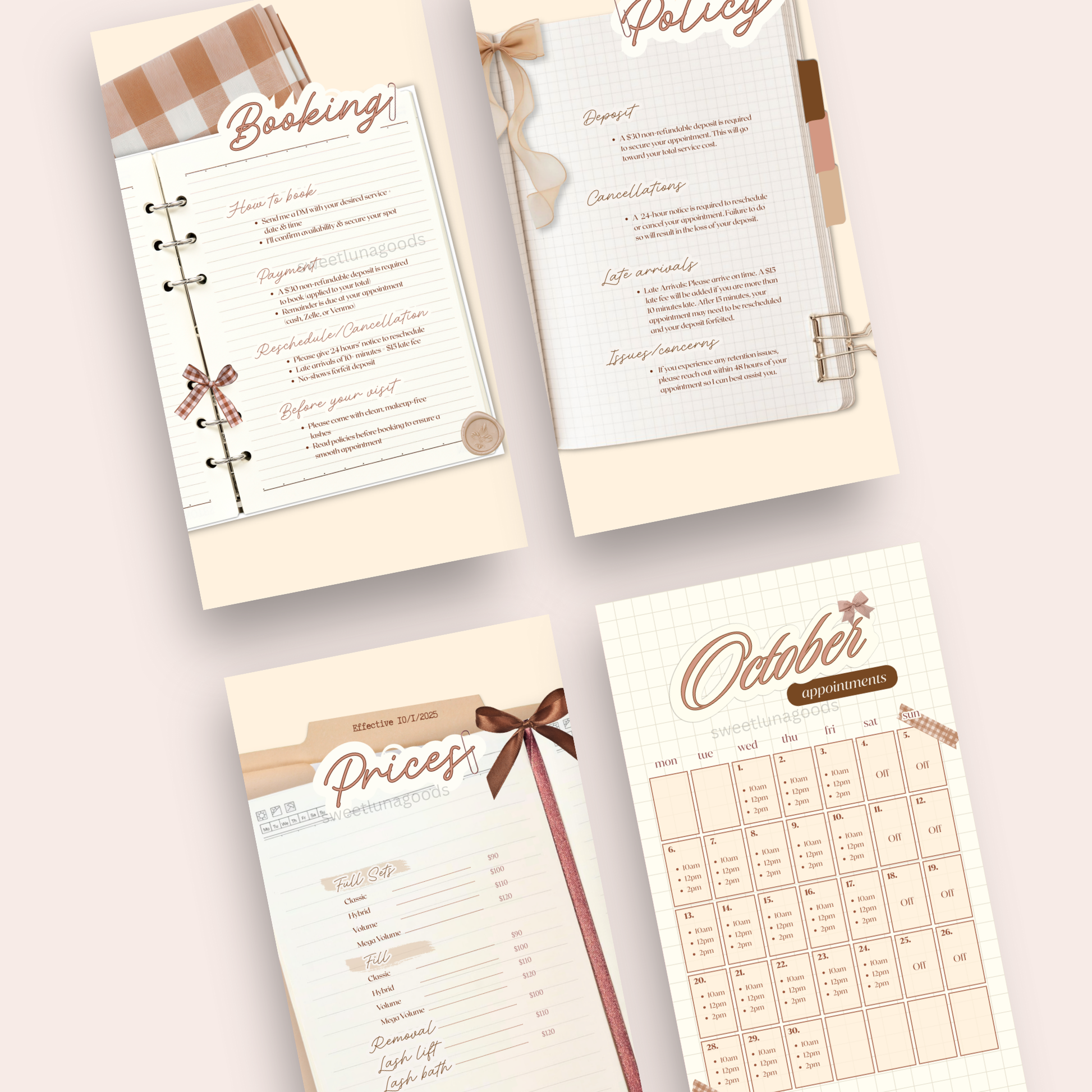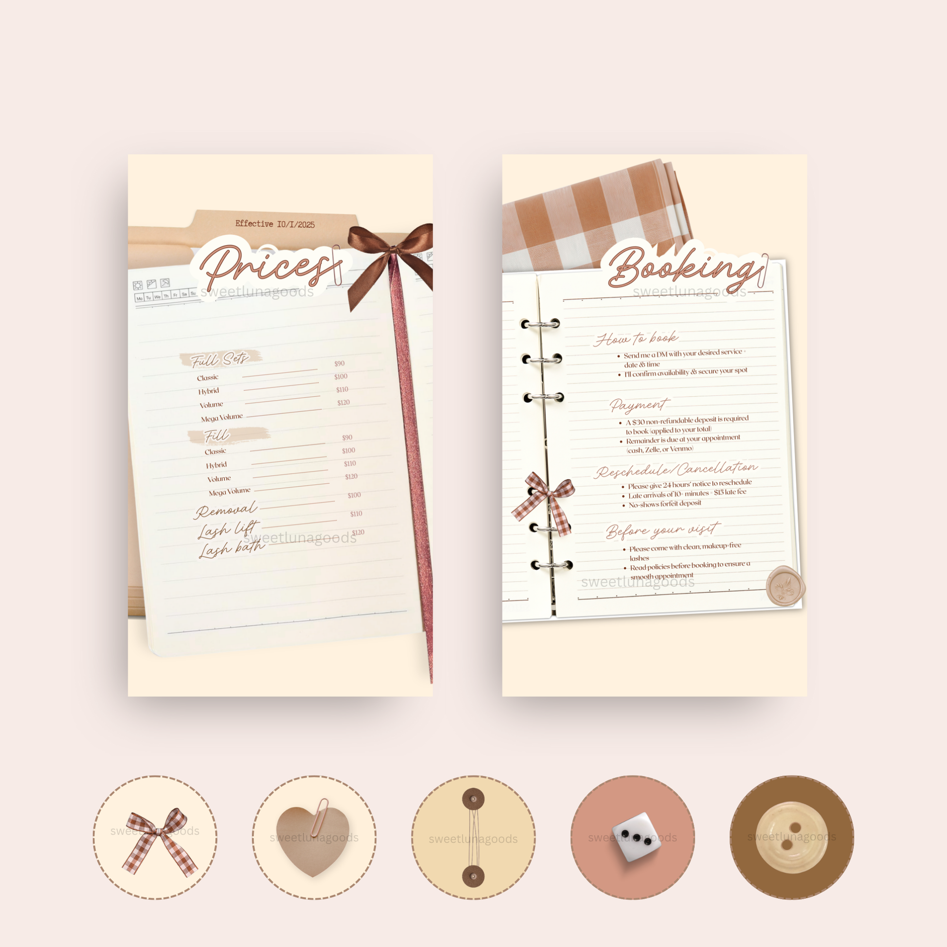 Give your IG page a fun, fresh, and client-ready look with this September kit! Designed in a coquette-pink, scrapbook style, this bundle helps lash and nail techs make their page visually appealing without the stress of designing from scratch.